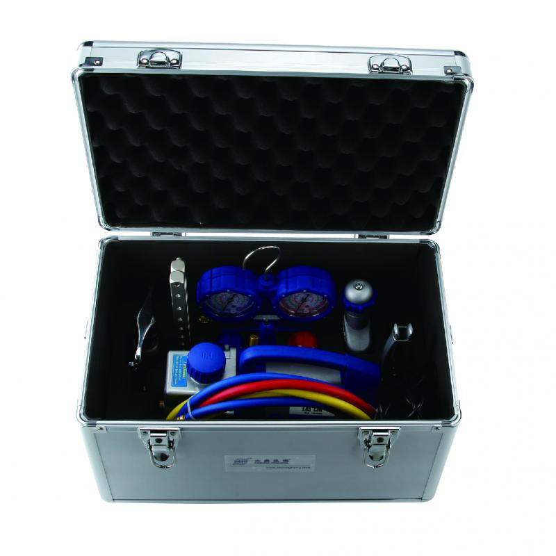 "Набор инструмента WK-7P предназначен для монтажа, сервиса кондиционеров и холодильных установок. В комплект  WK-7P входит: Вакуумный насос VK -115N (42 л/мин), Масло для вакуумных насосв OIL (0,33 л), Вальцовка VK-809, Манометрический коллектор WK-6003S( R410A, R22, R134A, R404C),